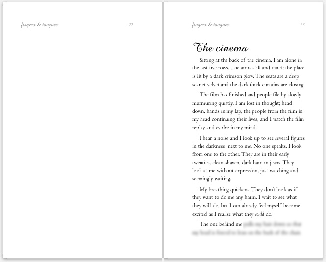 Instead, I will start this story on the left-hand page so that the reader has more time to get into the story before they have to turn the page.