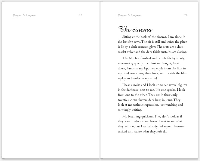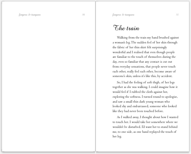 I think I might have invented a new genre of erotica. I ran a successful crowdfunding campaign on Kickstarter to print my book, fingers & tongues.