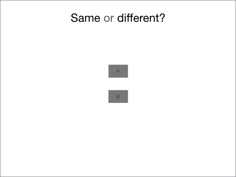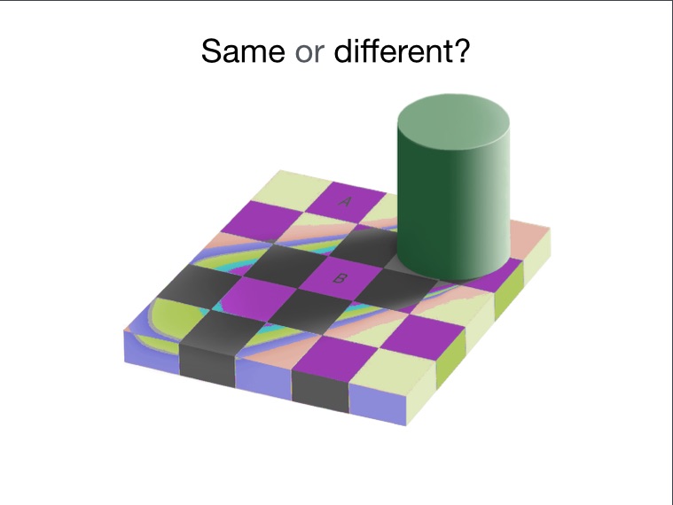 Now, do you see the blocks A and B as the same grey or different?