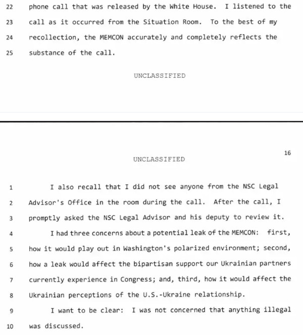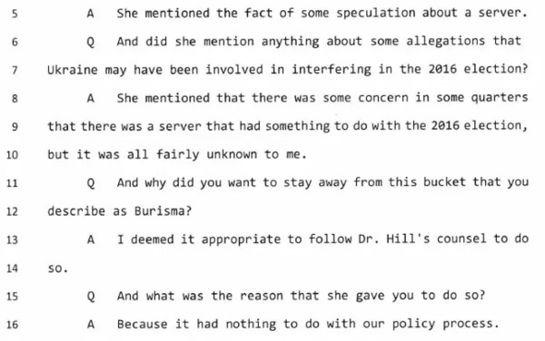 Vindman: I attributed that to the fact that this transcript that is being produced may have not caught the word Burisma and in the transcript that was released, it was released as a company, which is accurate. It’s not a significant omission.