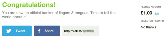 If you miss the share links after making your pledge, you can still share my campaign from the campaign page itself; the links are under the main image.