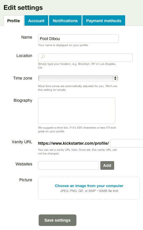 The rest of this guide is about managing notifications (mail messages) from Kickstarter, managing how your name is displayed as a backer on my campaign and how to change or cancel your pledge.