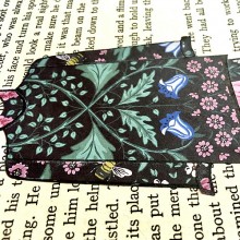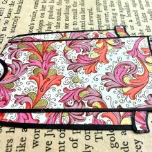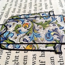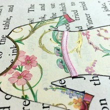 These are designs in decorative wrapping paper, and mounted on vintage book pages.