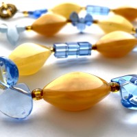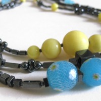 Black, blue and yellow glass and hematite necklace