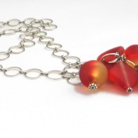 Modern red acrylic necklace on a metal ring chain w/ bracelet