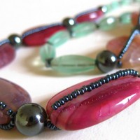 Pink agate necklace and green fluorite and black hematite