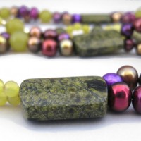 Green stone and purple freshwater pearl necklace