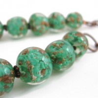 Vintage green glass and metal necklace