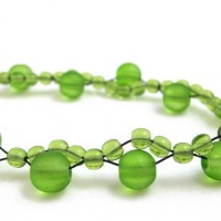 Pretty frosted green glass and black wire necklace