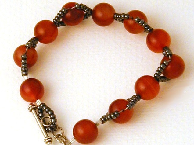 The bracelet was secured with a sterling silver toggle and a beaded loop.