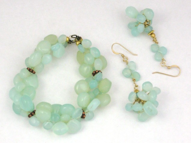 I made this bracelet for myself with some of my favourite beads, milky chalcedony.