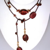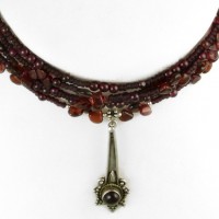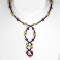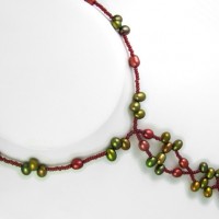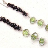 Pretty earrings of green enamel with garnet, jade and mother of pearl