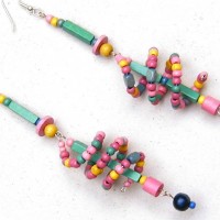 Pretty earrings of green enamel with garnet, jade and mother of pearl