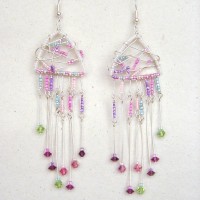 Chinese enamel earrings with garnet, lapis lazuli and peridot
