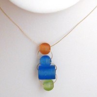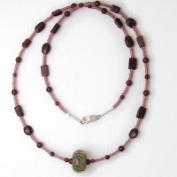 Gorgeous lariat necklace of amethyst, fluorite and hand-made glass