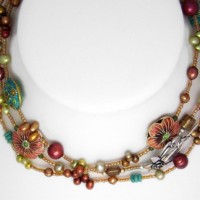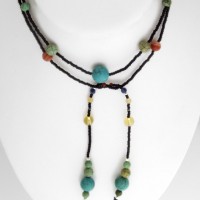 Long enamel, turquoise and glass necklace