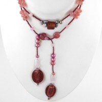 Pink gemstone and freshwater pearl lariat