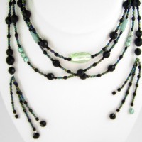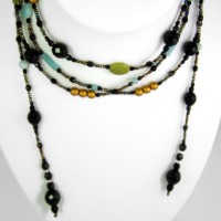 Very smart lariat necklace of black glass and pastel gemstones