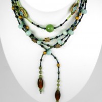 Amazonite, peridot and enamel lariat necklace