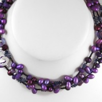 Very long hematite and purple pearl necklace