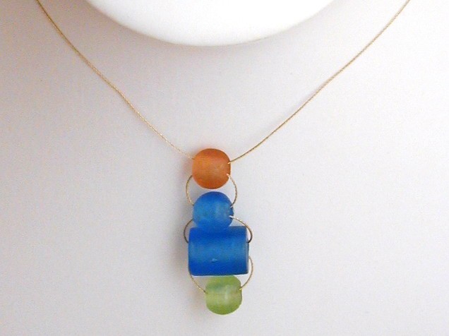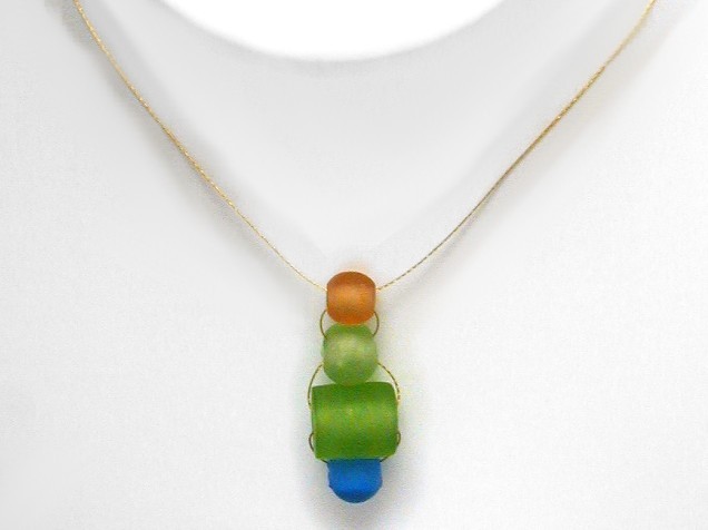 Glass necklace in green, blue and amber