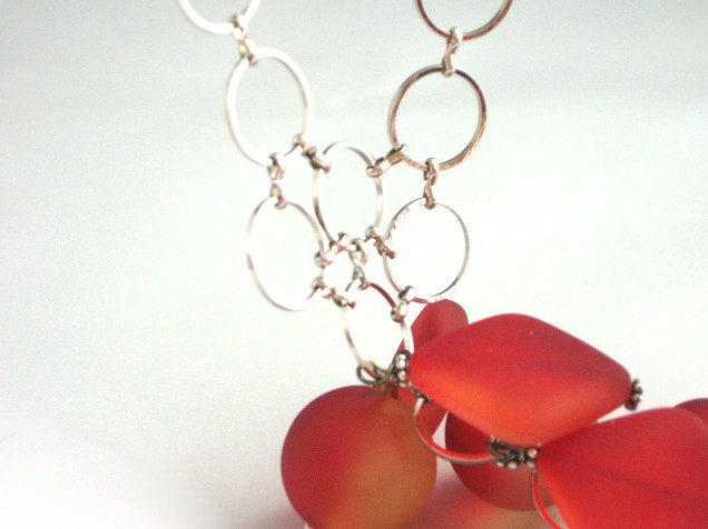 Modern red acrylic necklace on a metal ring chain w/ bracelet