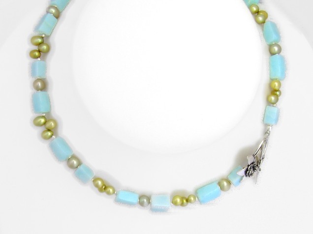 Peruvian opal and green pearl necklace