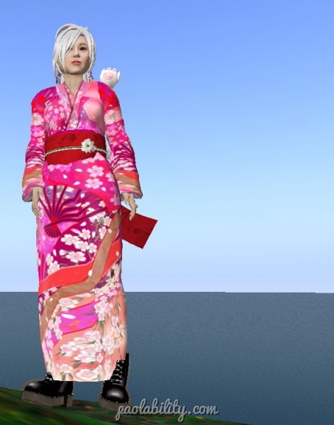 Best skin with favourite white hair, kimono and Doc Marten boots.