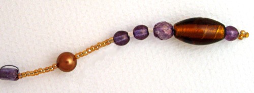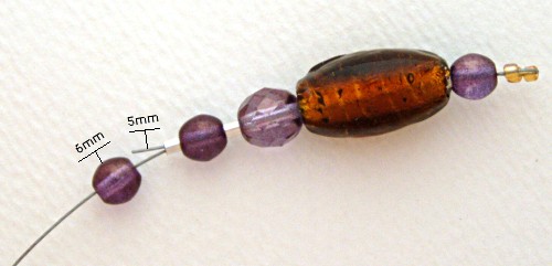 In these examples I use 6mm Picasso glass rounds, 8mm x 7mm Picasso pillows, 8mm faceted Picasso rounds and a 10mm x 20mm foil-lined oval.