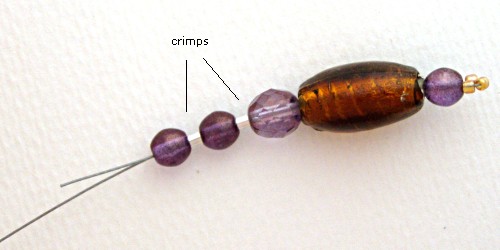 3) Pull the wire through all the beads and crimps. Pull the wire tightly and crimp both crimps.