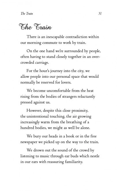 The Train: An accidental touch during the morning commute inspires a fantasy. (?f)
