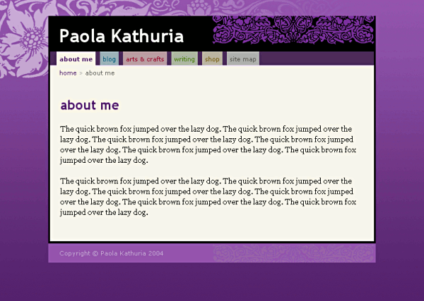 Jun 2004: Francois's first reworking was already a vast improvement. The deeper colours and decorative page background were gorgeous. However, I could not think of a way to implement the vignetted background.
