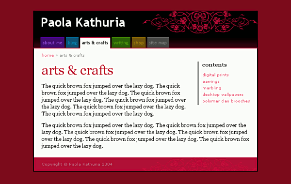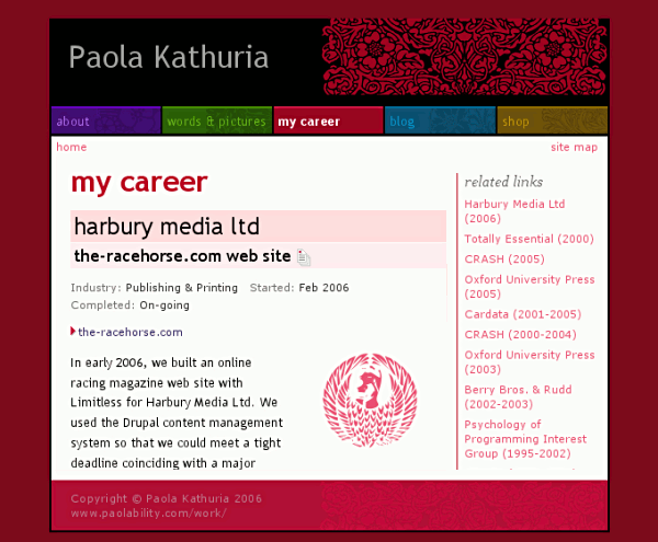 Aug 2006: This is what the red section page looked like at relaunch at paolability.com.
