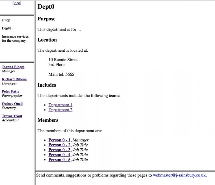 Prototype Intranet web pages