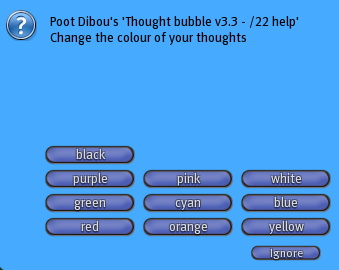 I made a fun attachment which would make people's thoughts appear above their head. I thought it would be fun to play around with the idea of what people said (typed) compared to what they actually thought.