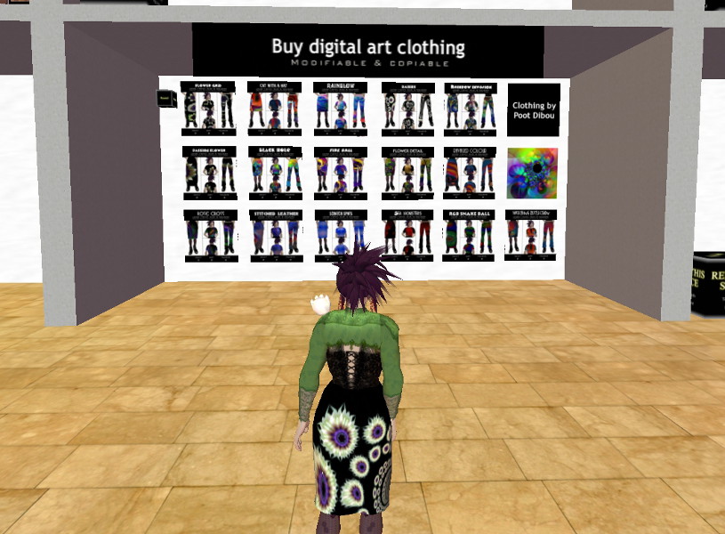 I built two tools in 2010 which are still being bought today. I also sold framed digital art for people's SL homes, advertised my jewellery and created a range of clothes with my digital art which I sold in shops within SL as well as the Second Life Marketplace.