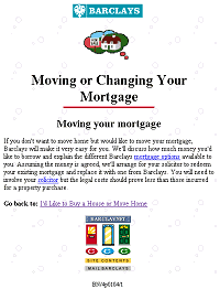 If you don't want to move home but would like to move your mortgage, Barclays will make it very easy for you. We'll discuss how much money you'd like to borrow and explain the different Barclays <A HREF="/personal/mortgage.html">mortgage options</A> available to you. Assuming the money is agreed, we'll arrange for your solicitor to redeem your existing mortgage and replace it with one from Barclays. You will need to involve your <A HREF="/personal/solicitor.html">solicitor</A> but the legal costs should prove less than those incurred for a property purchase.