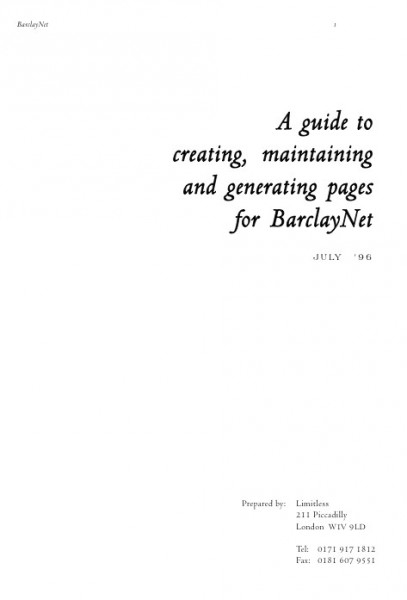 In 1995, Limitless got together with a marketing company and their design arm, Denison Design, to design and build BarclayNet - a Barclays Bank web site for personal and business customers.