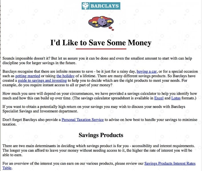 Barclays Bank made information available on their personal and business products by way of printed leaflets. They wanted to put the information in these leaflets online.