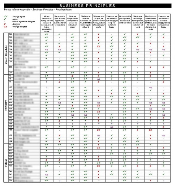We devised a section in the survey on Business Principles. It allowed companies to make certain statements that could reasonably be tied to their ethos, or strategy, without the statements necessarily being seen as judgmental or threatening.