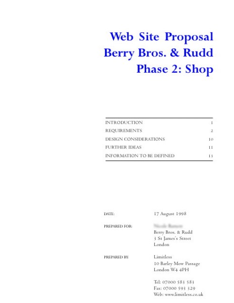 In 1998, three years after Limitless first put the Berry Bros. & Rudd broking list online, Berry's finally gave way to customer demand and decided to put their entire wine list online.