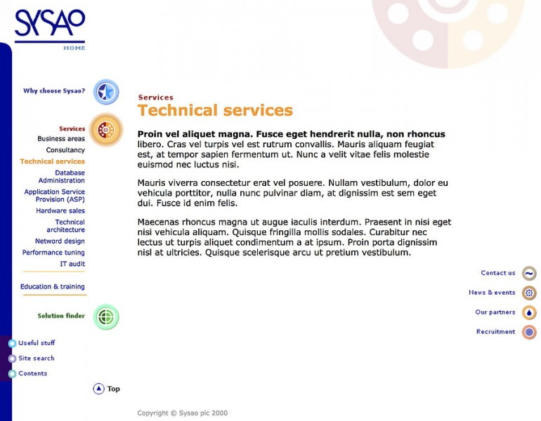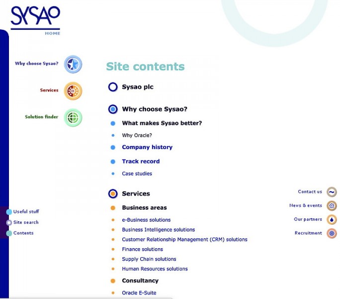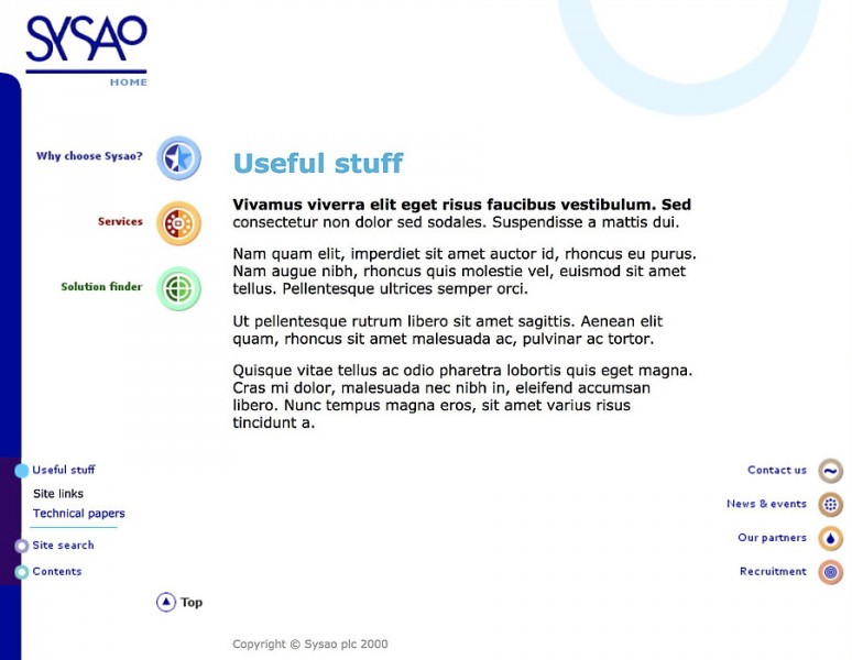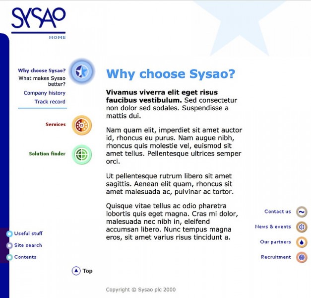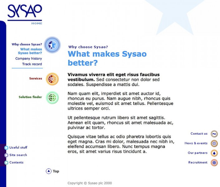 Sysao wanted to replace their existing web site with one that would help generate new business, and support existing customers and partners. They wanted marked-up web pages for each page type and a style manual.