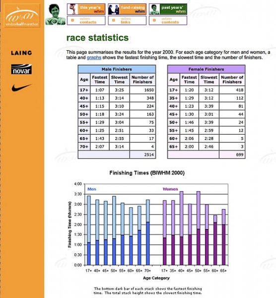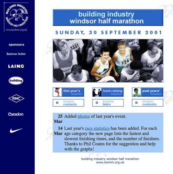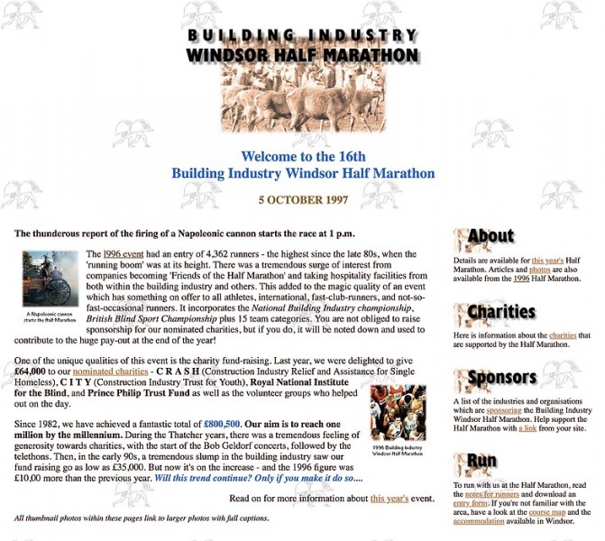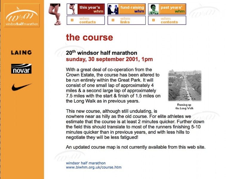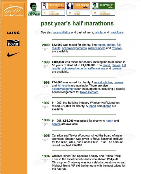 The original Race Director of the Windsor Half Marathon did not have access to the web; Paola took responsibility of the site structure, design and content.