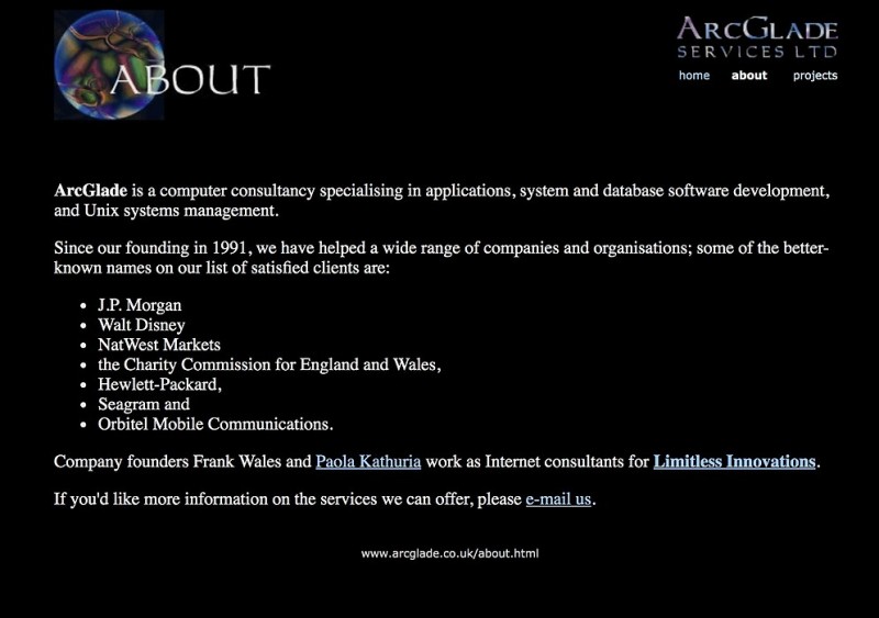 Paola designed and built the web site for ArcGlade in 1996 and 1998.