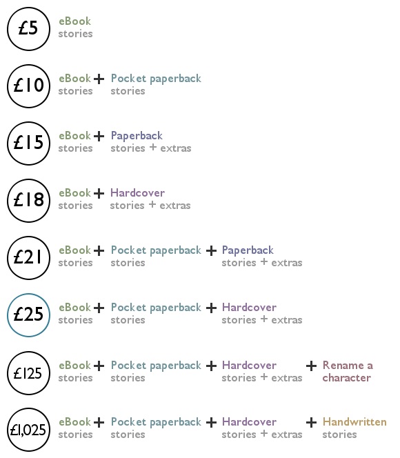 It was around this time that I discovered the Kickstarter Project Description Template. I realised that I had falled in the trap of describing the history of the stories rather than what someone would get out of the stories.