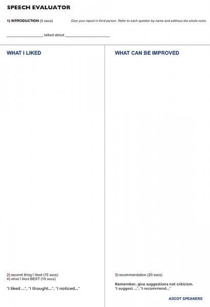 I videoed every meeting for over a year, made videos for members to upload as private links on YouTube. It's good to get feedback from other members but it's really good to see yourself, what you did well and what could be improved.