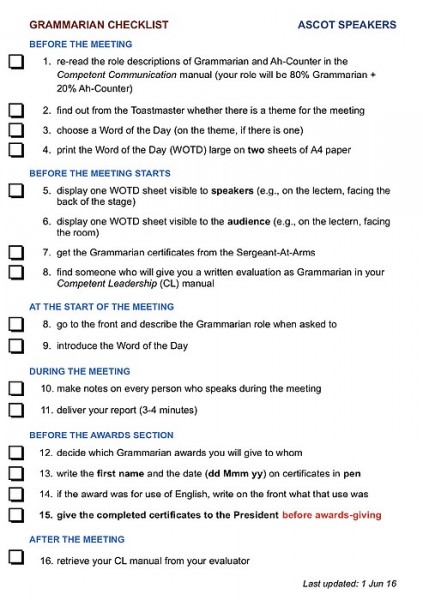 - as VP Education, scheduling speeches, assigning meeting roles, writing role guides