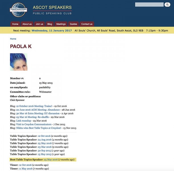 I started a new Toastmasters public speaking club in Ascot.