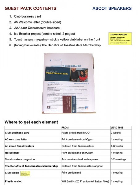 - visiting other Toastmaster clubs with prospective members for research